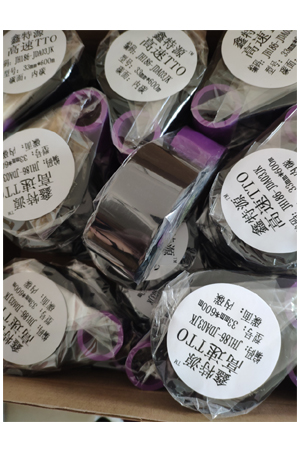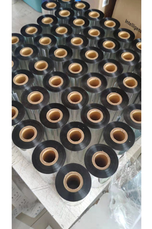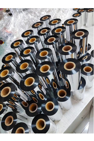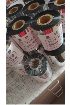 产品介绍:热转印条码碳带就是在一面涂上蜡基、树脂基或混合的 油墨的聚脂或其它高密度薄膜。 热转印打印就是用热和压力将油墨从碳带介质转印到纸或薄膜的过程,当标签通过打印机的打印头和 时,将油墨转印到标签上